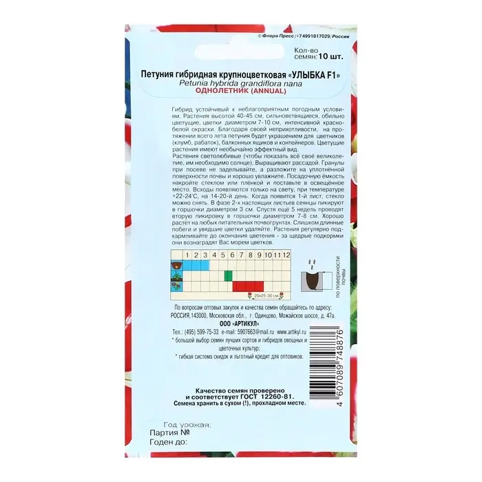 Семена Цветов Петуния крупноцветковая "Улыбка", 10 шт 1029122