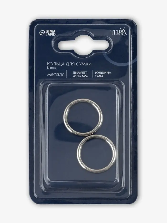 Кольцо литое TEIRA, для сумки, d=20/24 мм, набор 2 шт., 3.1 г, s=2 мм, цвет серебряный