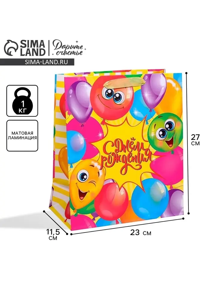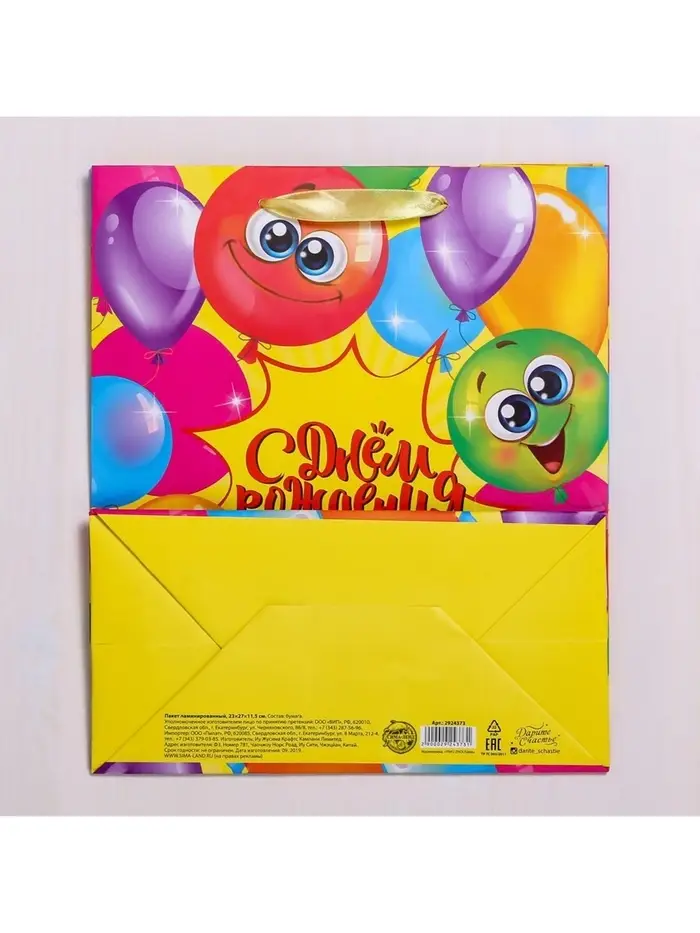 Пакет подарочный ламинированный, упаковка, «Весёлого дня рождения!», ML 23 х 27 х 11.5 см