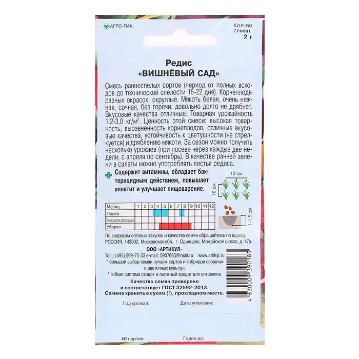 Семена Редис «Вишневый сад» раннеспелый, 2 г.
