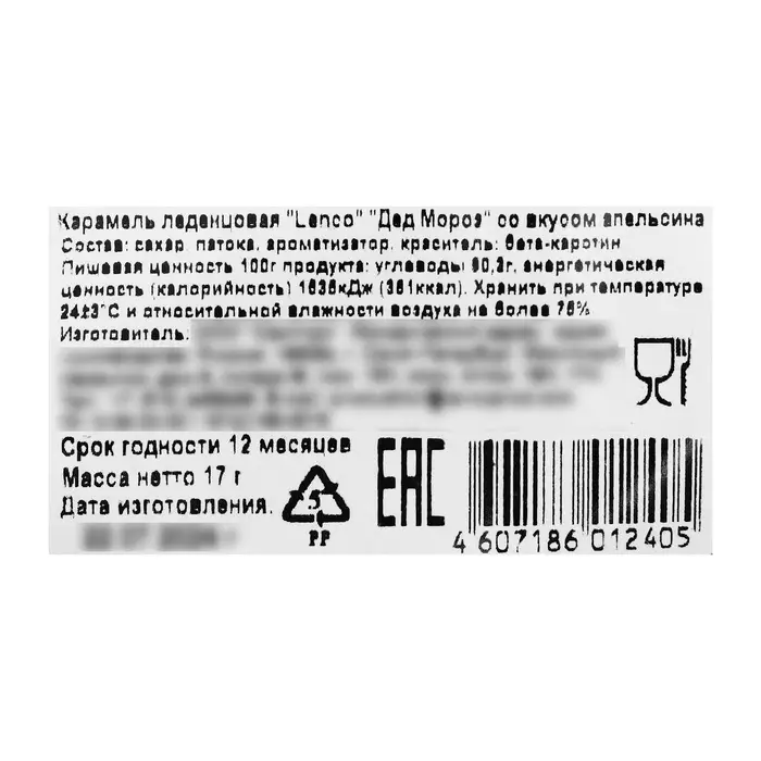 Состав: сахар, патока, натуральный ароматизатор, краситель, бета-каротин.