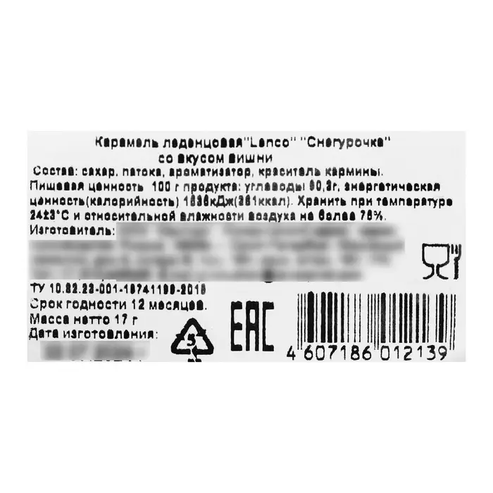 Состав: изомальт, подсластитель (сукралоза), регулятор кислотности (лимонная кислота), ароматизаторы, красители (хлорофил, куркумин, аннато).