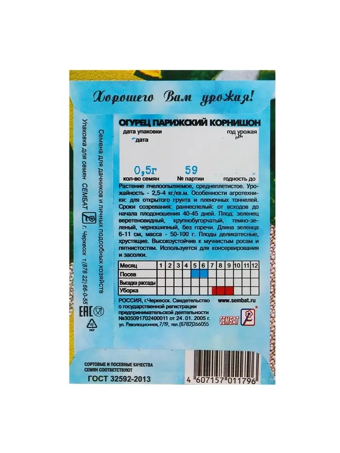 Семена Огурец "Парижский корнишон", 0,5 г
