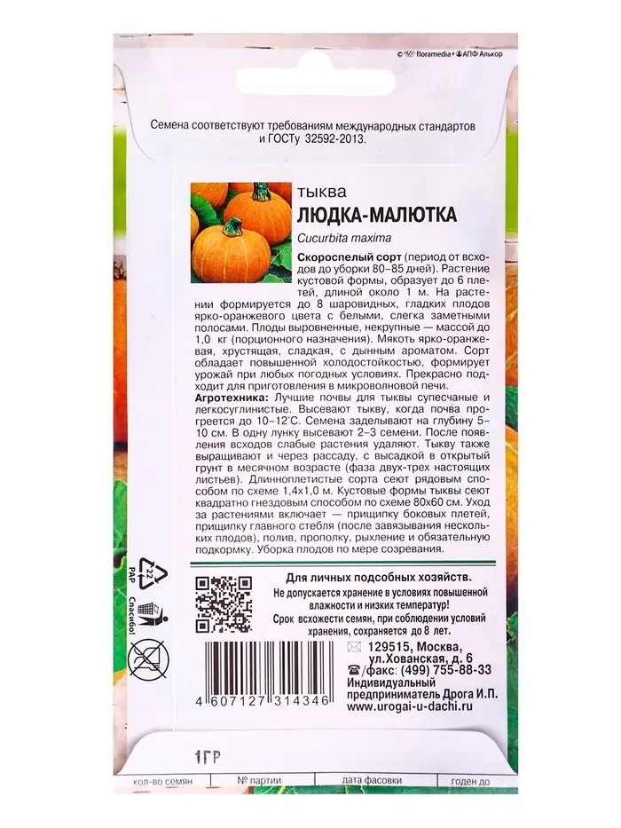 Семена Тыква"Сибирская малышка"3шт* Селекция Агрос