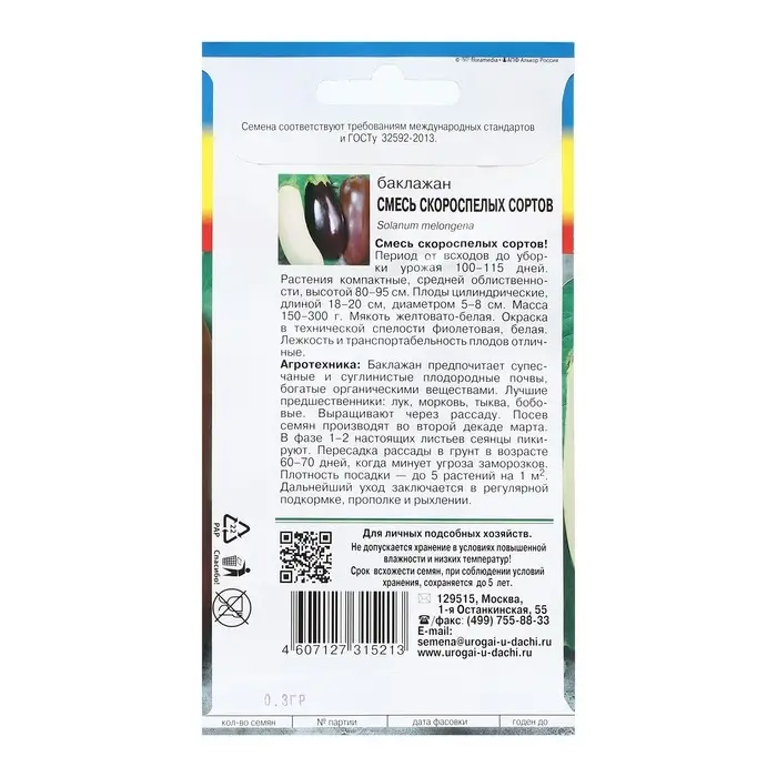 Семена Баклажан "Алёшка", F1, скороспелый, 0,05 г