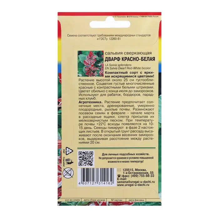 Семена цветов Сальвия "Дварф", Красно-белая, 0,03 г
