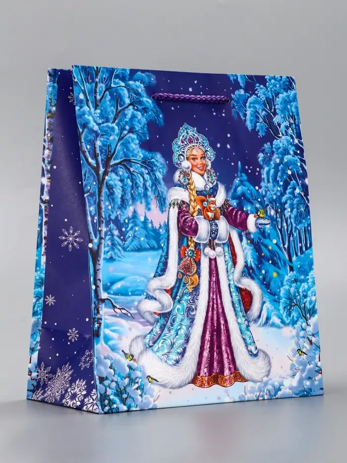 Пакет подарочный новогодний ламинированный, «Снегурочка» , 18×10×22.3 см