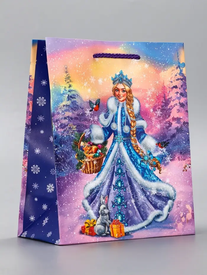Пакет подарочный новогодний ламинированный, «Снегурочка ждет Деда Мороза» , 18×10×22.3 см