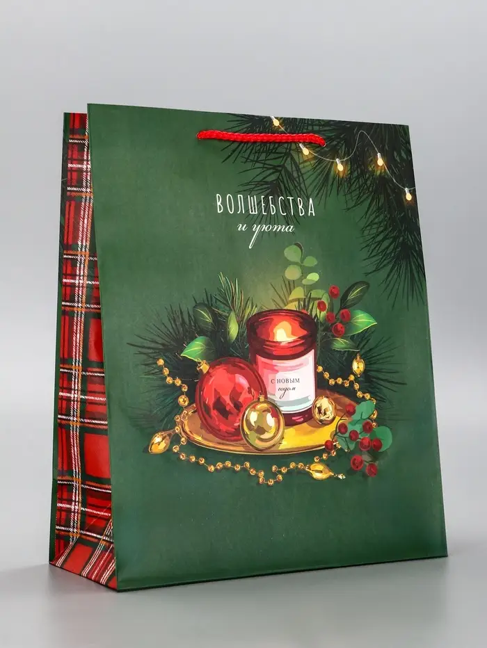 Пакет подарочный новогодний ламинированный, «Волшебства и уюта» , 26×12×32 см