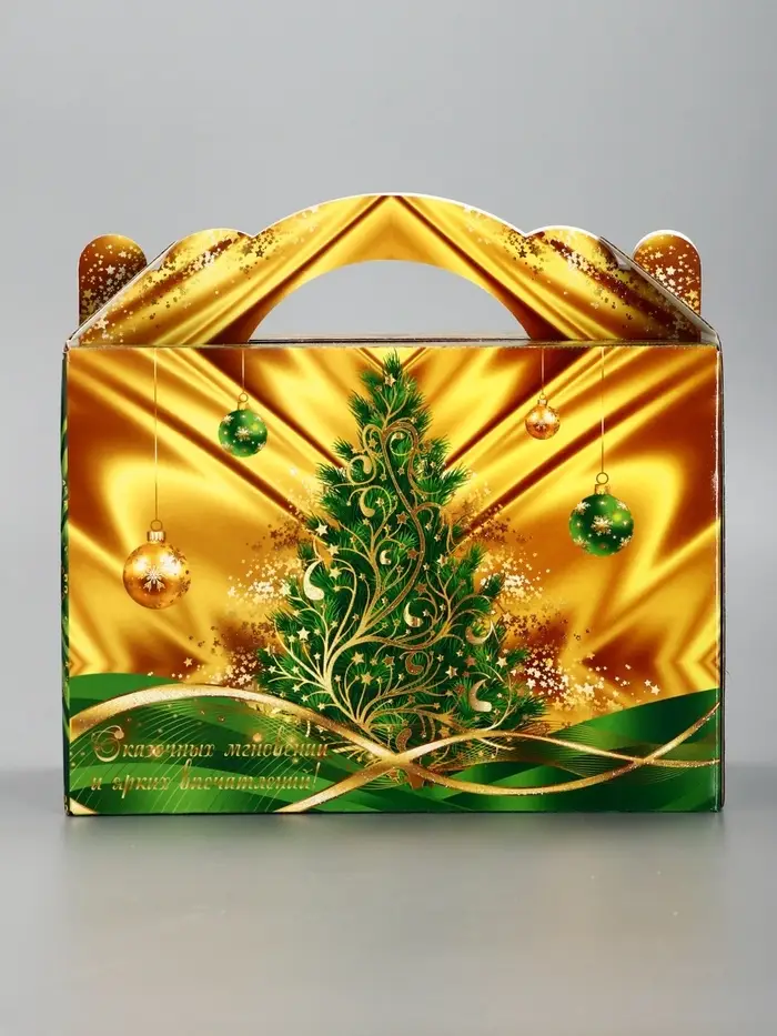 Подарочная новогодняя коробка «Праздничный шелк» в зеленом, 25×12×24 см