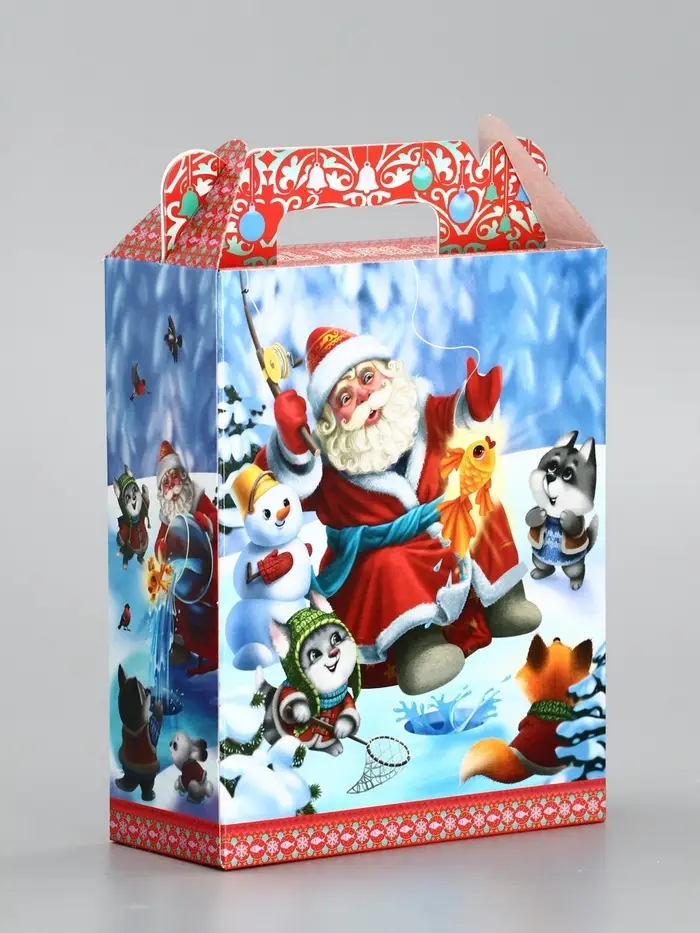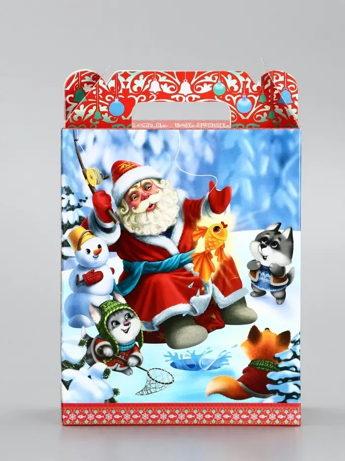Подарочная коробка новогодняя «Золотая рыбка» 14×6×21 см