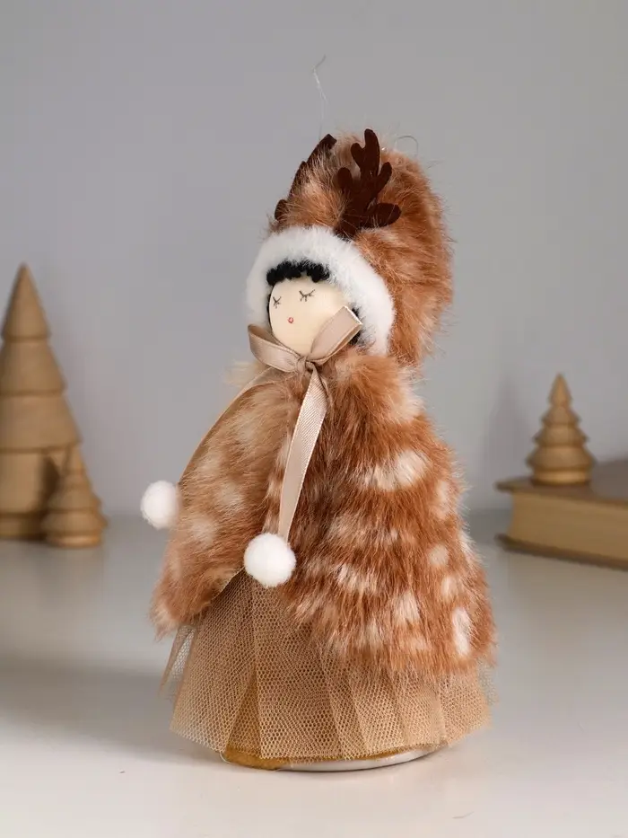 Кукла интерьерная "Девочка в меховой накидке, в шапке с рожками" 7х7х19 см