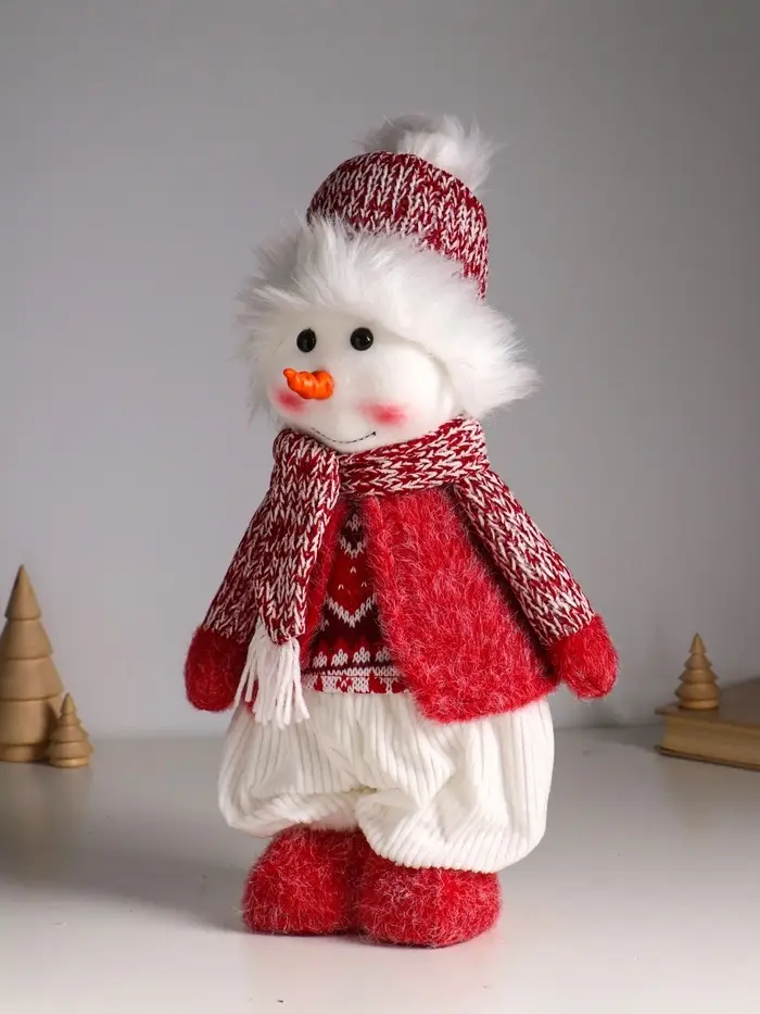 Кукла интерьерная "Снеговичок в бело-красном наряде" раздвижная 44-65 см 22х14х44 см