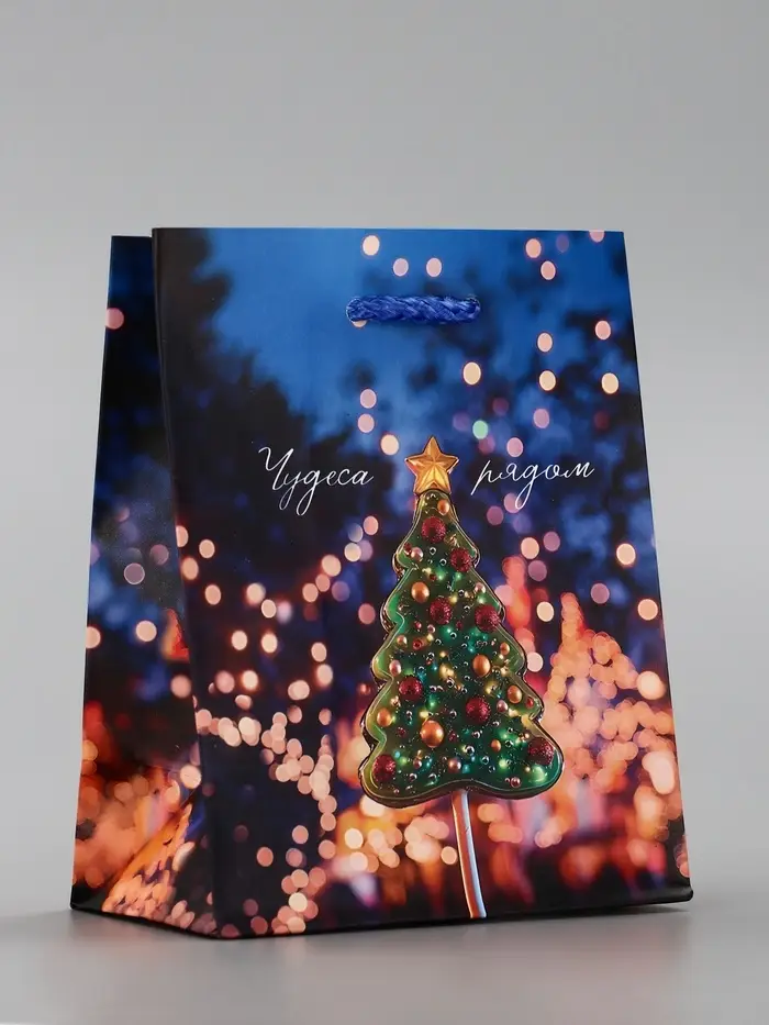 Пакет подарочный новогодний ламинированный, «Дед Мороз» , 11.5×6.5×14.5 см