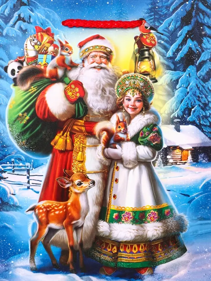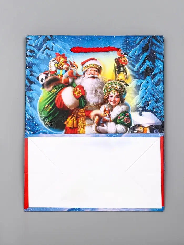 Пакет подарочный новогодний ламинированный, «Дед Мороз с подарками» , 18×10×22.3 см