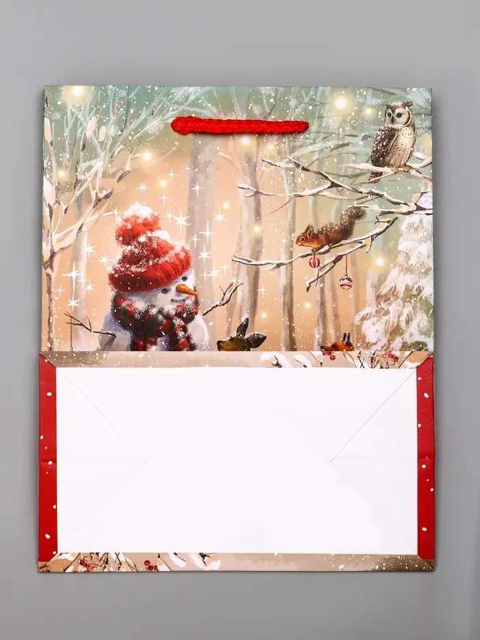 Пакет подарочный новогодний ламинированный, «Встреча друзей » , 18×10×22.3 см