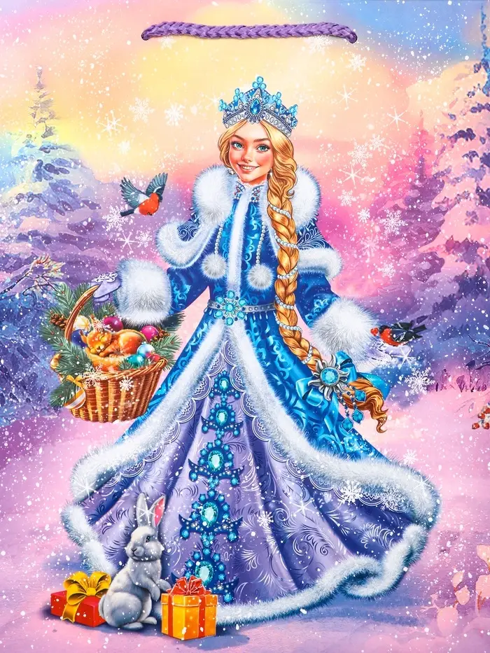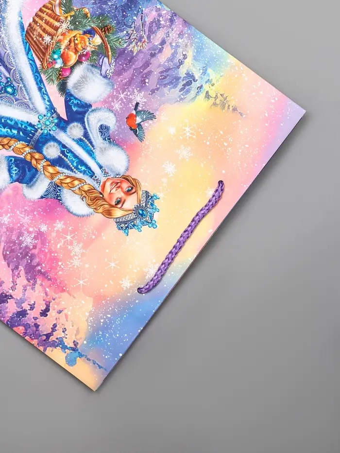 Пакет подарочный новогодний ламинированный, «Снегурочка и зайчик» , 26×12×32 см