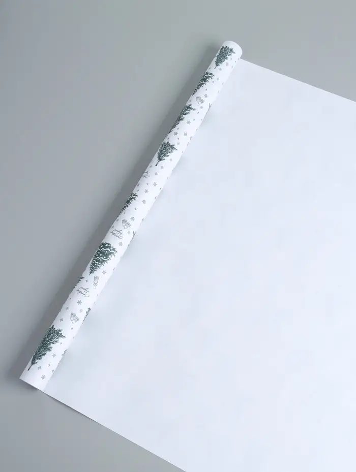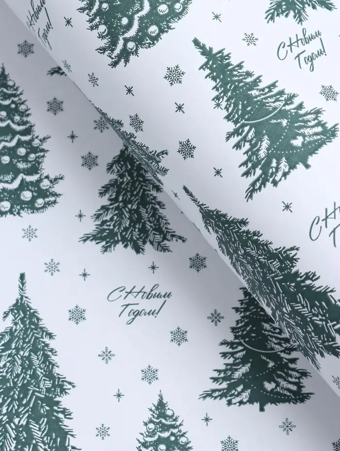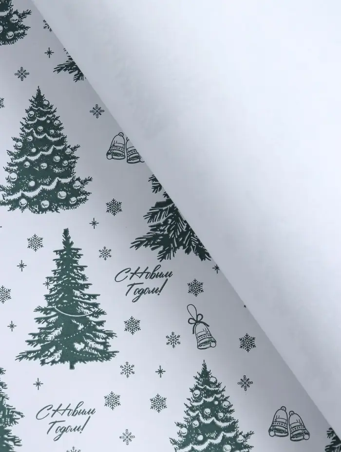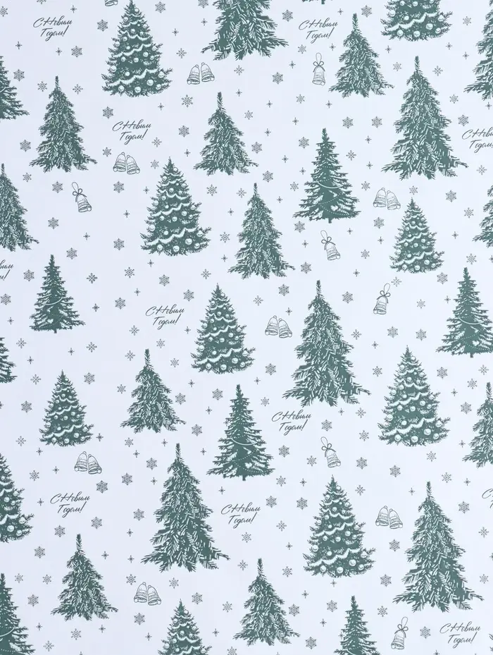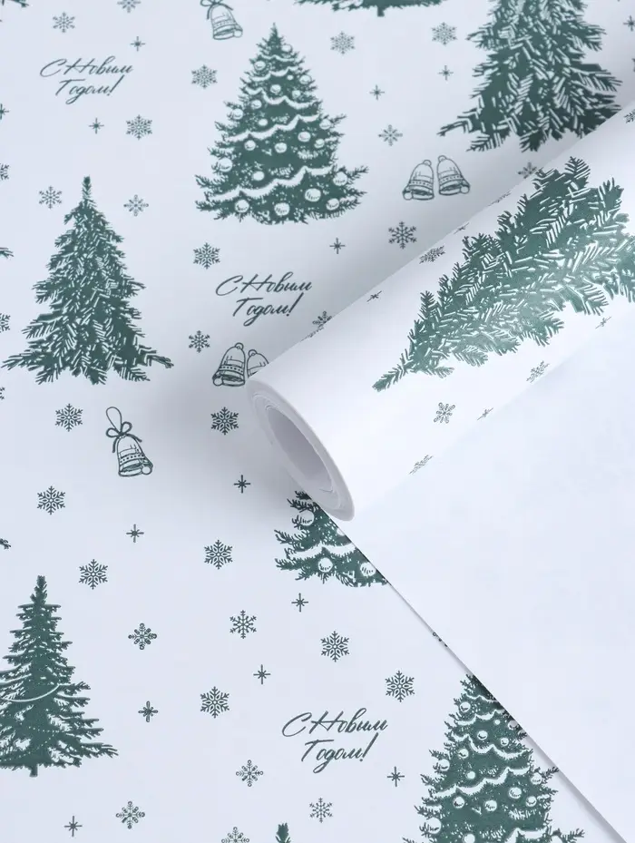 Бумага упаковочная крафт, "Ёлки", на белом 75гр/м² 0,72 х 10 м