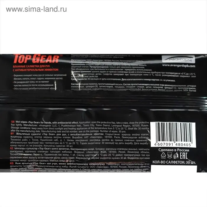 Влажные салфетки Top Gear, для рук, 30 шт.