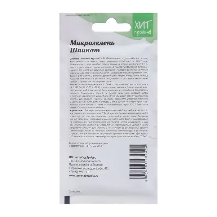Семена Микрозелень "Шпинат", 5 г