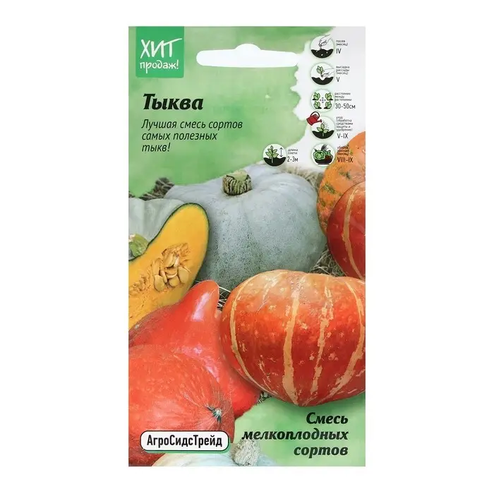 В смесь входят сорта Крошка, Россиянка и Конфетка, это ранние, среднеспелые и среднепоздние сорта, от всходов до уборки урожая 90-128 дней. Плоды плоскоокруглые и чалмовидные, гладкие и сегментированные, светло-серого и ярко-оранжевого цветов, массой 1,5-3,0 кг. Мякоть оранжево-красная, толстая, плотная, сладкая, с высоким содержанием сахаров и сухого вещества. Смесь сортов отличается высокой и стабильной урожайностью, отличными вкусовыми качествами, хорошо хранится. Используется в свежем и переработанном виде.