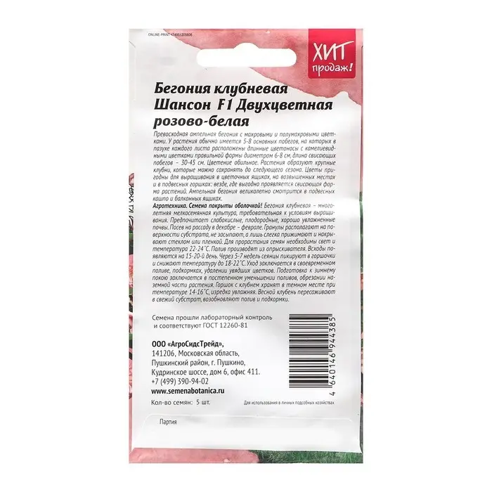 Семена Цветов Бегония "Шансон Двухцветная", 5 шт