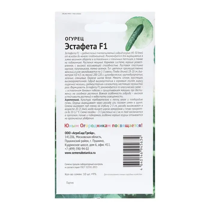 Семена Огурец "ЭСТАФЕТА", "Детская грядка",10 шт