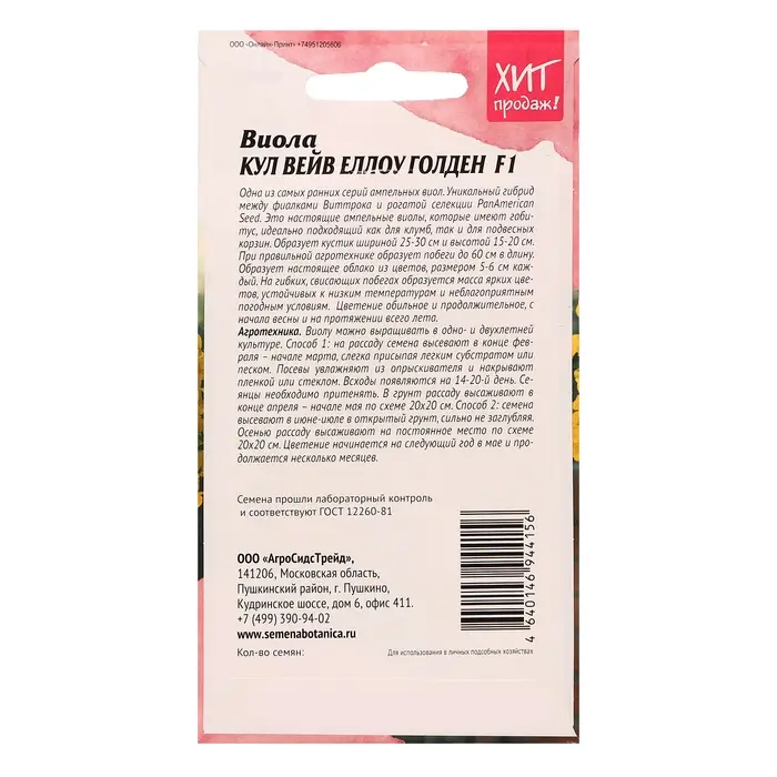Семена цветов Виола "Кул Вейв Еллоу Голден F1", 5 шт
