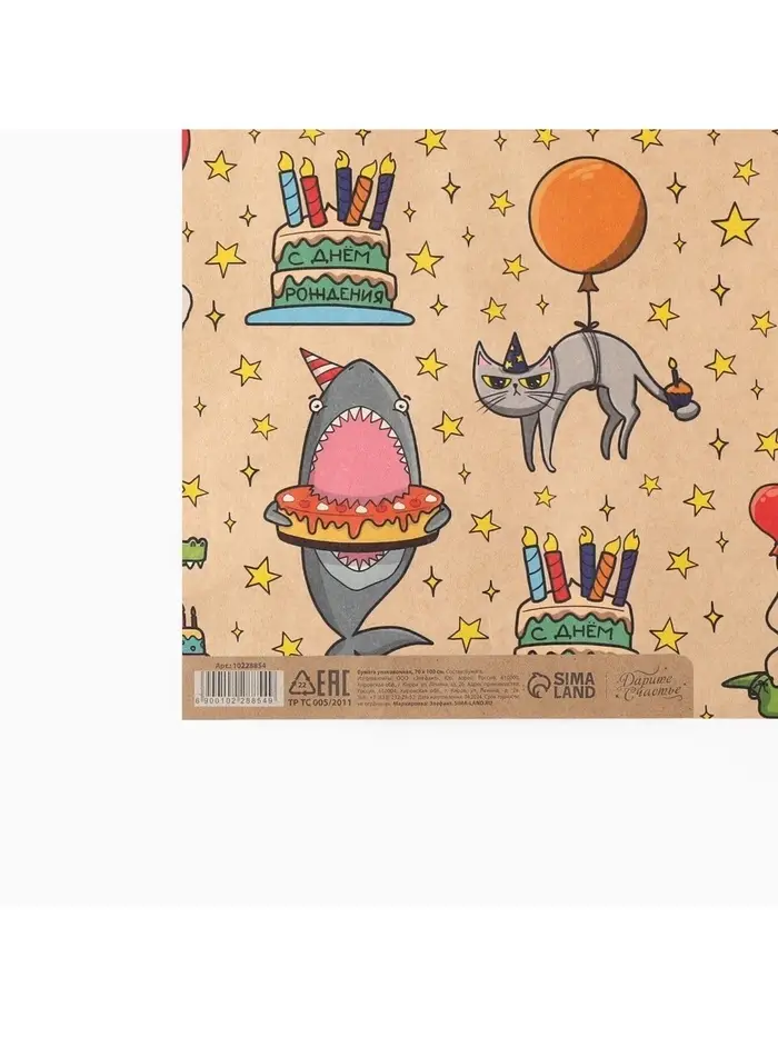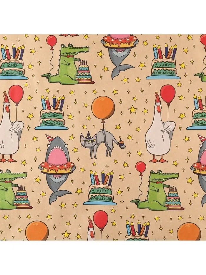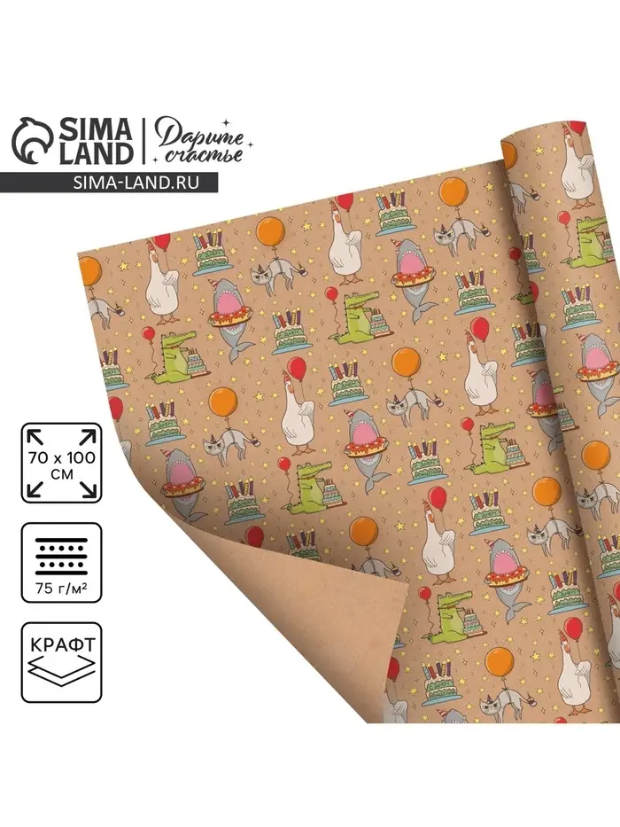 Бумага упаковочная крафтовая «Праздничные животные», 1 лист, 70 х 100 см