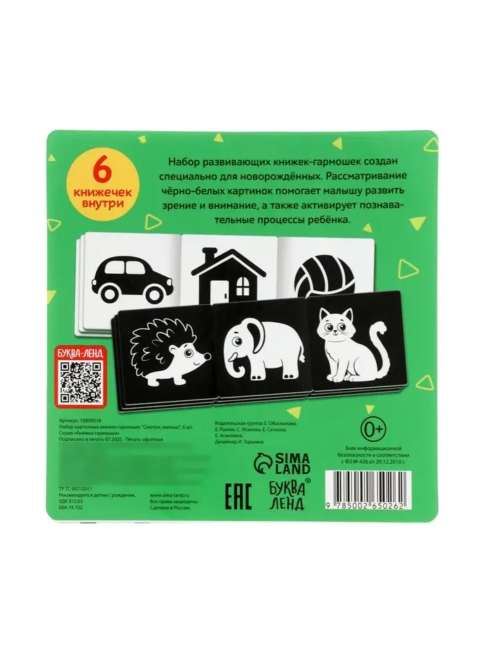 Набор картонных книжек-гармошек "Смотри, малыш!", 6 шт.