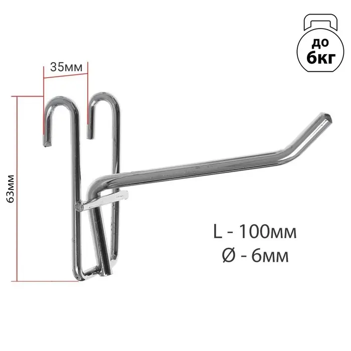 Крючок на сетку одинарный d=6 мм, L=10 см, хром — прочное и универсальное решение для организации товаров на торговых стендах и витринах. Благодаря диаметру 6 мм и длине 10 см, этот крючок подходит для размещения самых разных предметов: от упаковок с товарами до небольших инструментов и аксессуаров. Элегантное хромированное покрытие придаёт изделию современный внешний вид и устойчивость к износу, что особенно важно для интенсивного использования в розничной торговле.