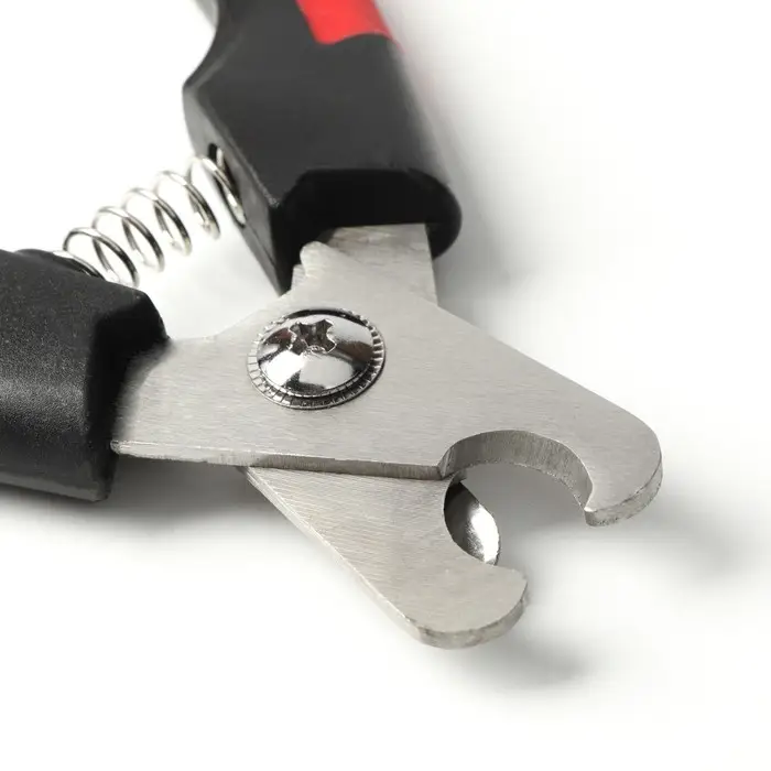 - Боковой когтерез с отверстием 13 мм: Подходит для толстых и длинных когтей. Лезвие подходит сбоку, что позволяет контролировать рез даже при сложной форме когтя. Ограничитель не даёт перерезать живое – безопасность при каждом нажатии.