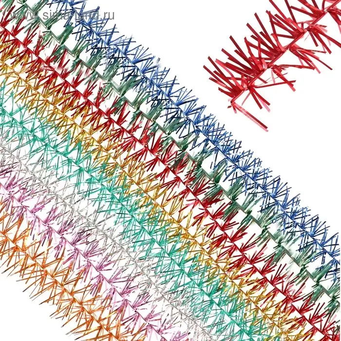 Эта мишура добавляет дереву живости и света без лишнего акцента. Разноцветная текстура работает как фоновый элемент или самостоятельный декор — в зависимости от вашего замысла. Используйте её как основу или как часть уже готовой композиции — она одинаково хорошо усиливает атмосферу Нового года и создаёт ощущение предпраздничного настроения.