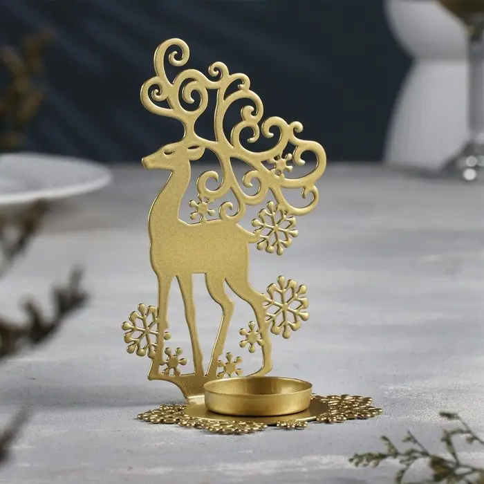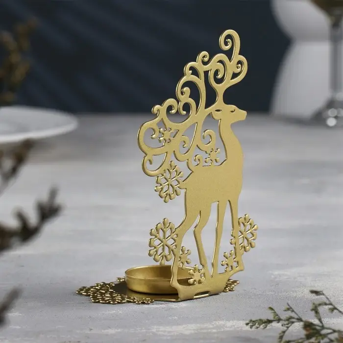 Подсвечник "Олень" металл на одну свечу, 6,5х9,6х14,5 см, золотой