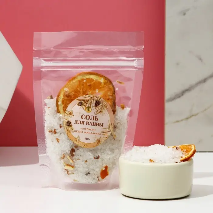 Соль для ванны с цедрой мандарина, можжевеловой ягодой и календулой, 150 г, ЧИСТОЕ СЧАСТЬЕ