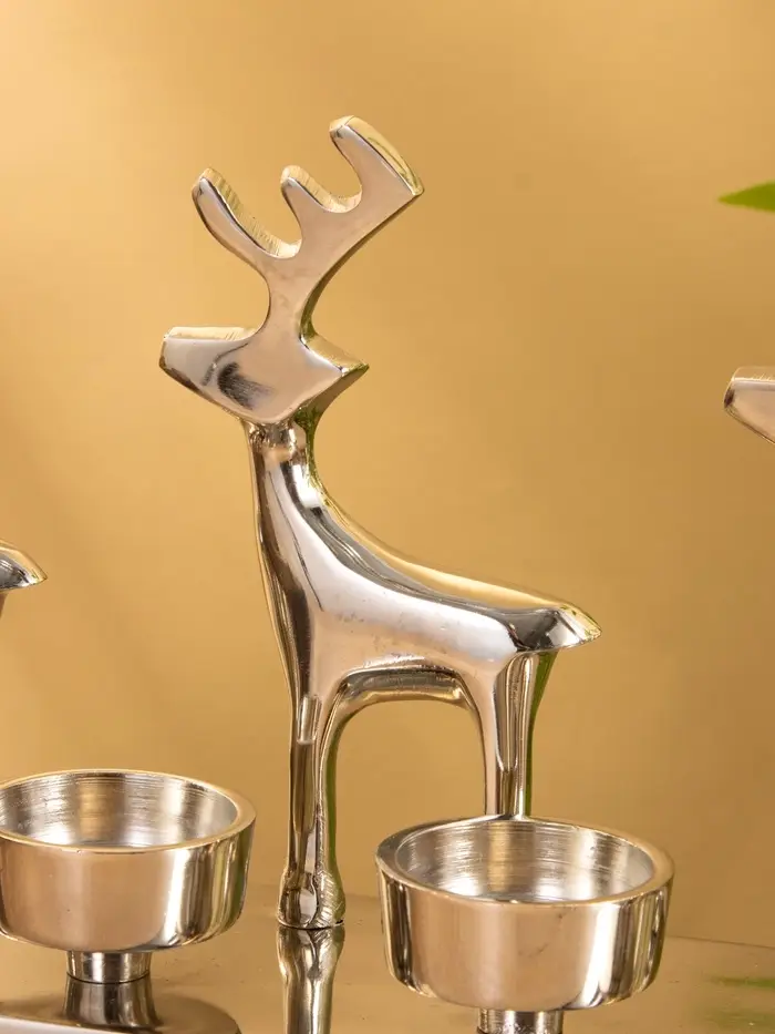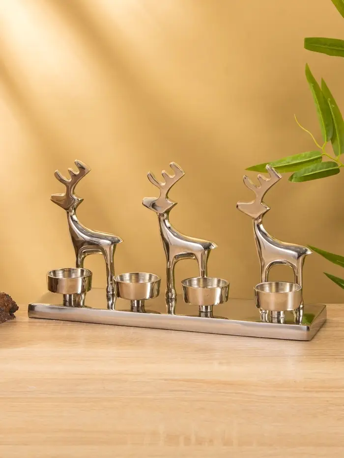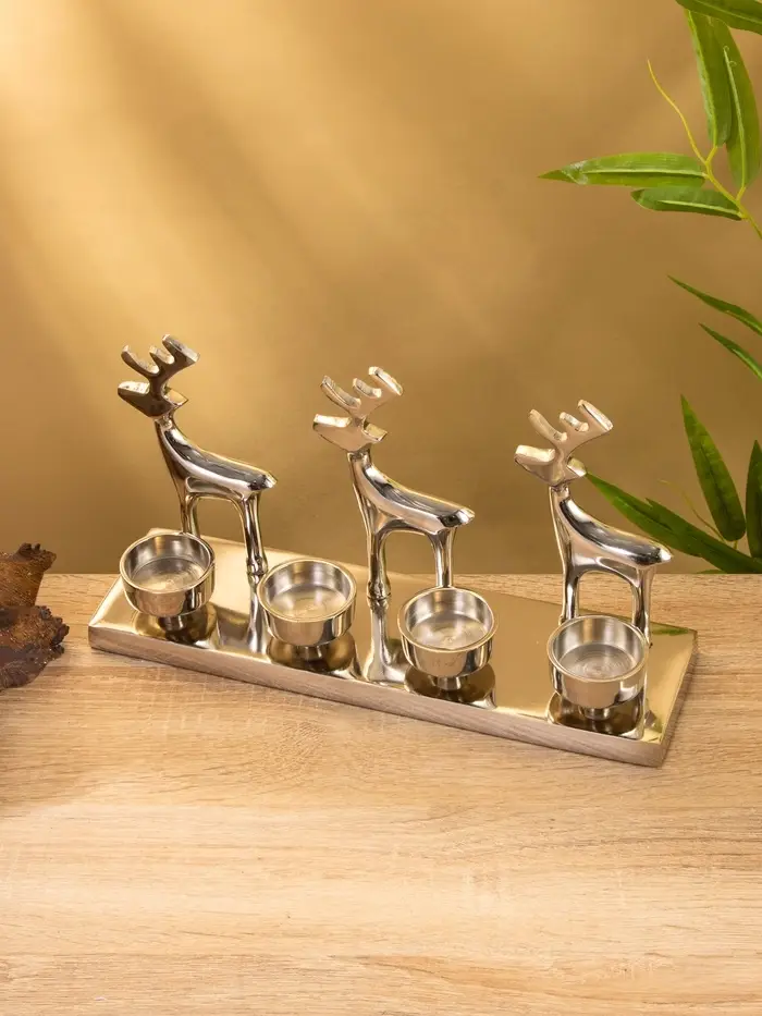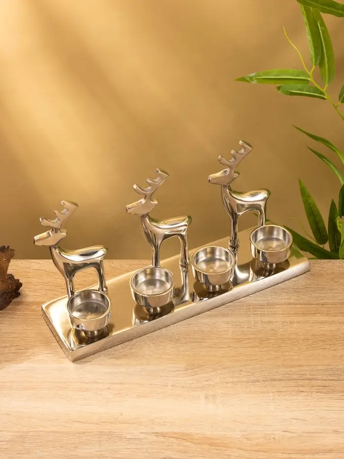 Подсвечник на 4 свечи "Трио оленей" алюминий 30х9х15 см