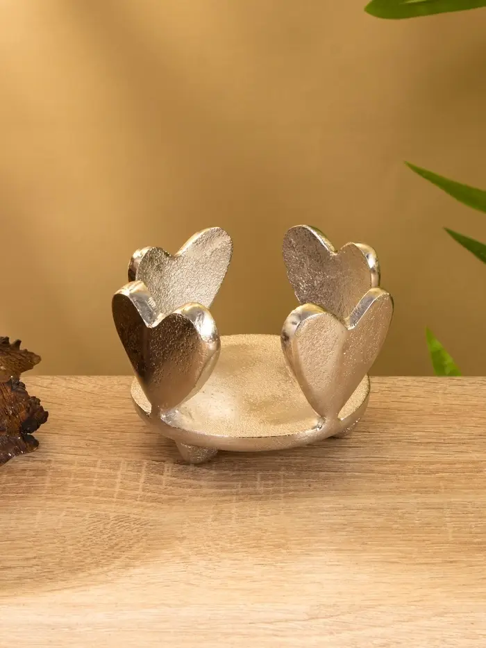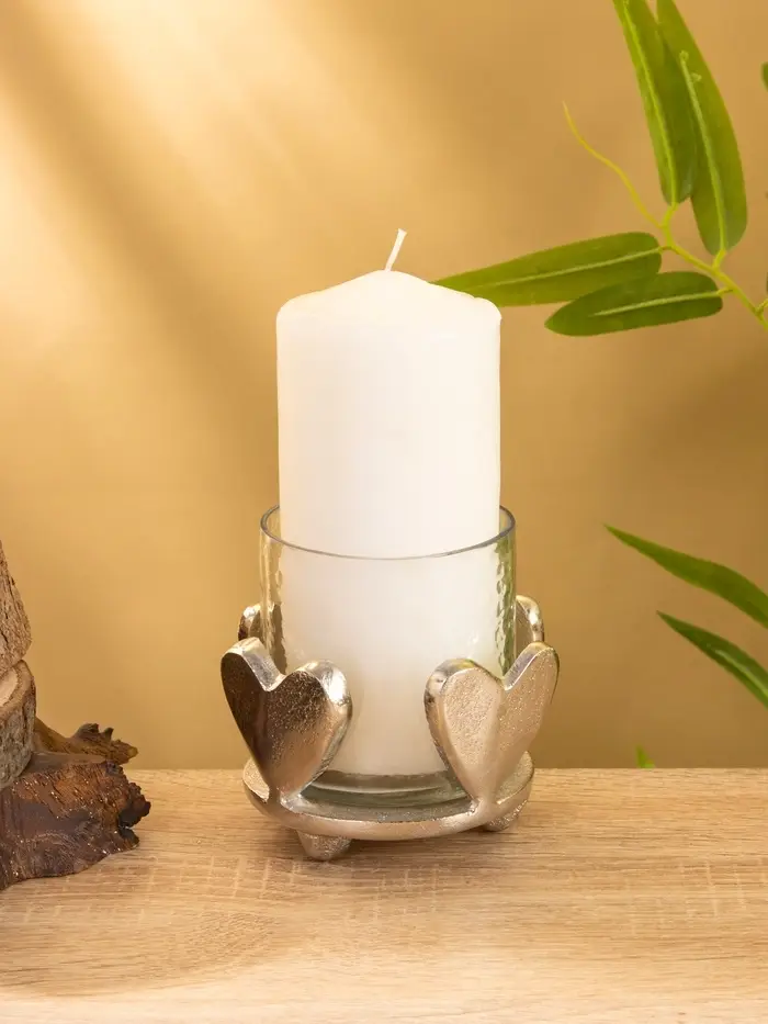 Подсвечник со стеклом "Сердце" алюминий 10х10х10 см