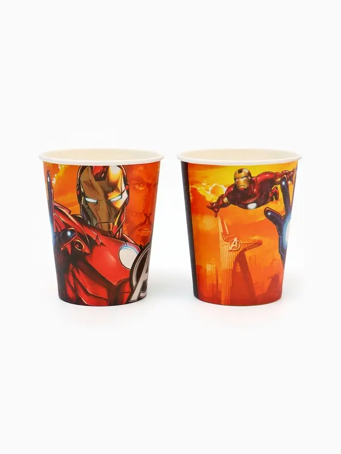 Набор бумажной посуды 10 персон: стакан, тарелка, скатерть, Мстители