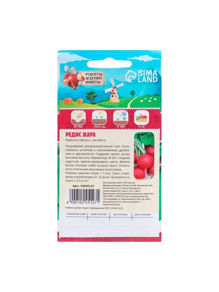 Семена редиса "Жара" — это высокоурожайный сорт, который отлично подходит для выращивания в условиях теплого климата. Вот подробное описание: