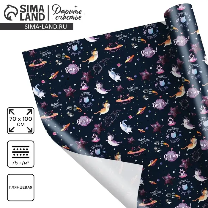Бумага упаковочная глянцева «Космос: Вперёд», 100 х 70 см