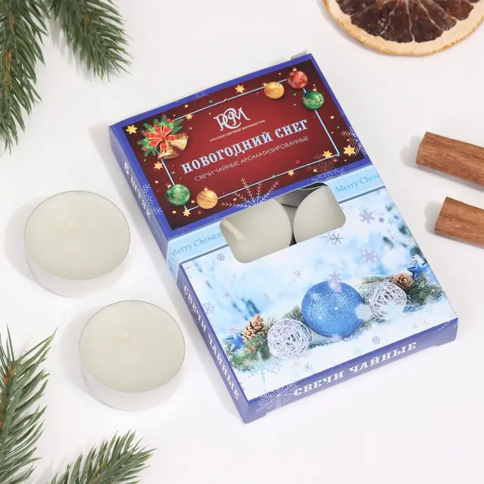 Набор чайных свечей ароматических "Новогодний снег", 6 штук