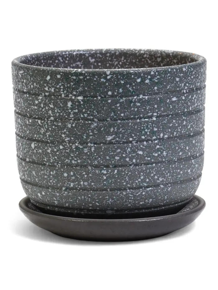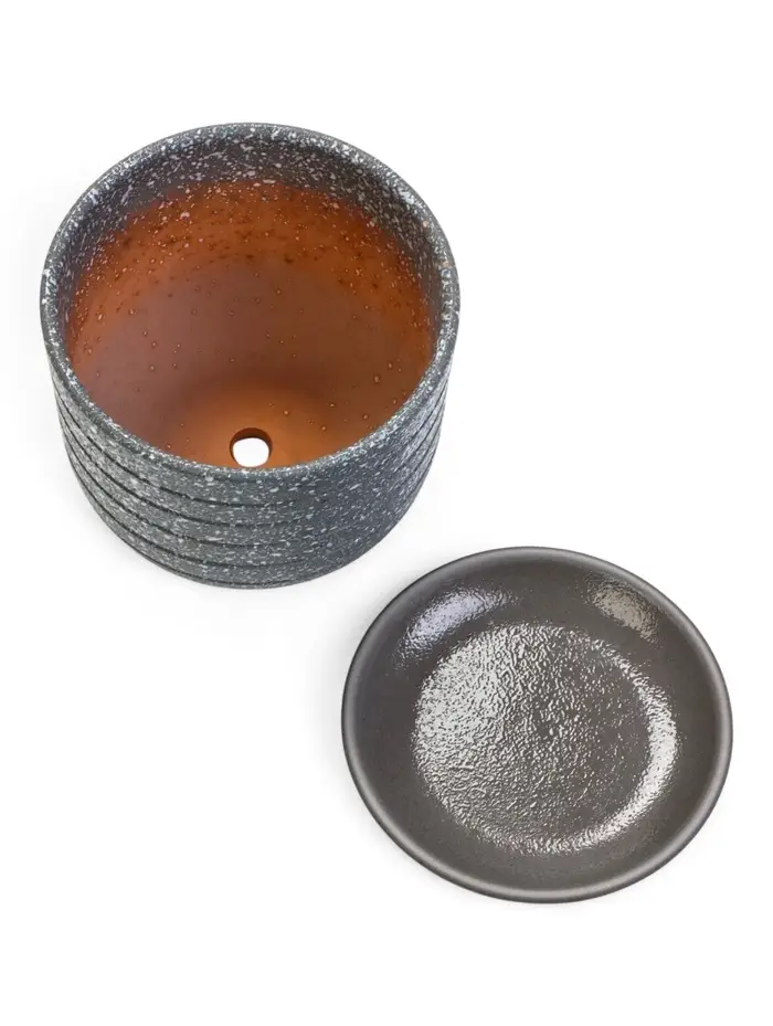 Горшок цветочный с поддоном 0,8 л, серый керамика "Пряности" (М)