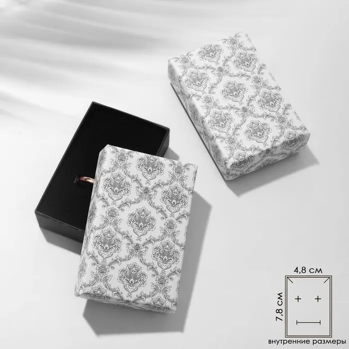 Коробочка подарочная под серьги/кулон/кольцо «Узоры графские», 5×8, чёрно-белый, вставка чёрная
