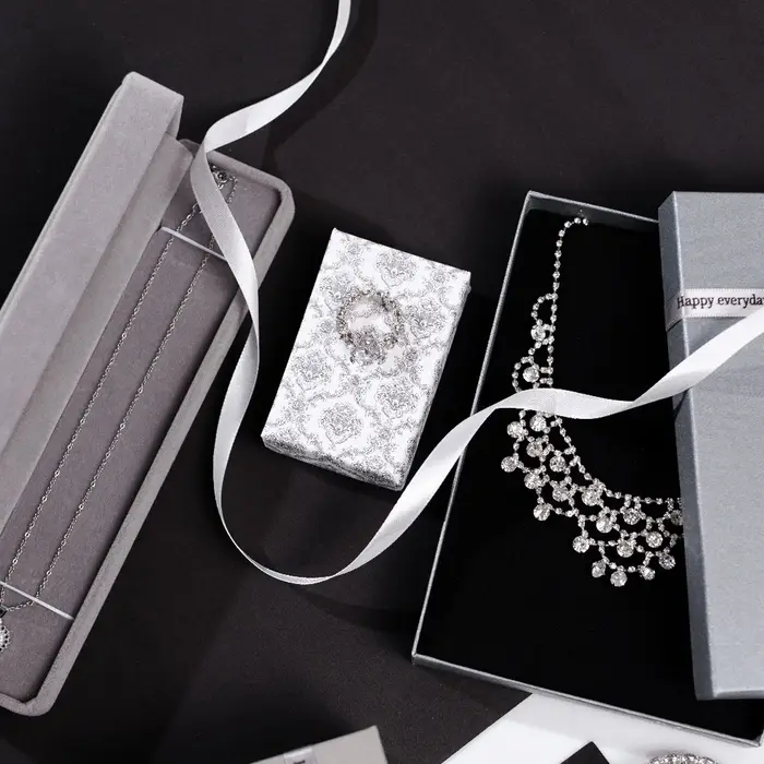С нашими прекрасными коробочками любой подарок станет еще лучше и ярче. Футляр выполнен из прочного плотного картона. Оптимальный размер коробки 5*8см позволяет разместить разнообразные виды ювелирных изделий – от сережек до колье. Внутри каждой коробочки с крышкой есть чёрная бархатная подложка. С помощью специальных прорезей на подушечке можно аккуратно разместить и зафиксировать цепочки, гвоздики и перстни. А если убрать подложку, упаковка подойдет даже для часов с мягким плоским ремешком или на цепи.