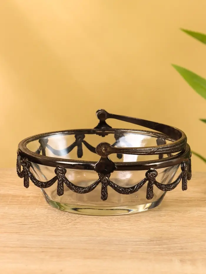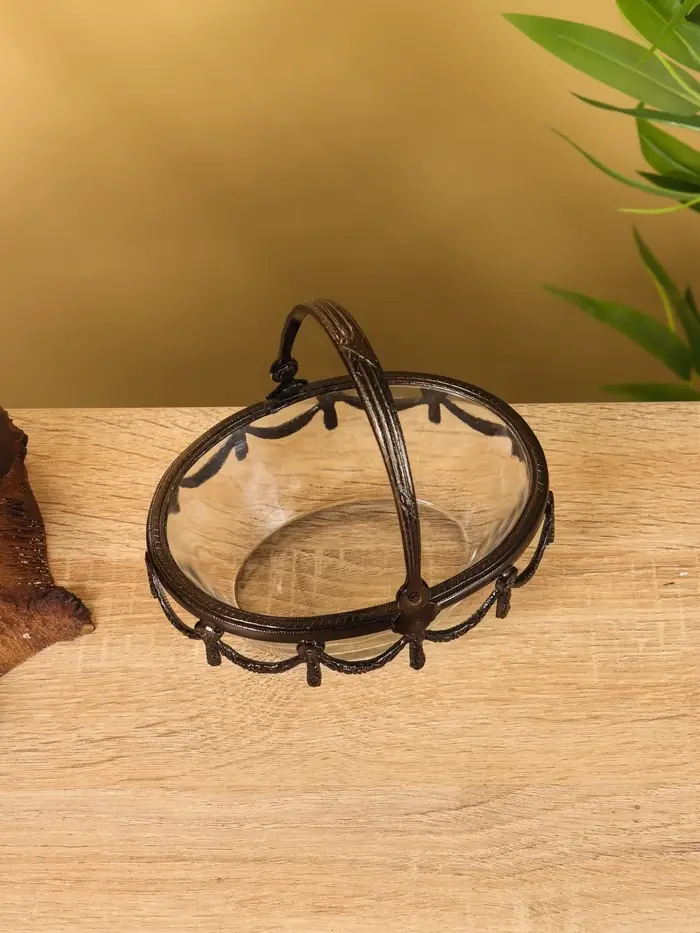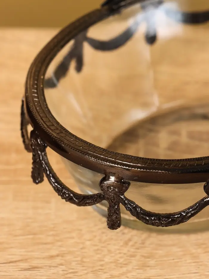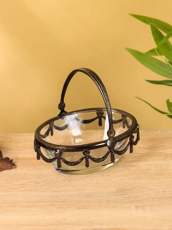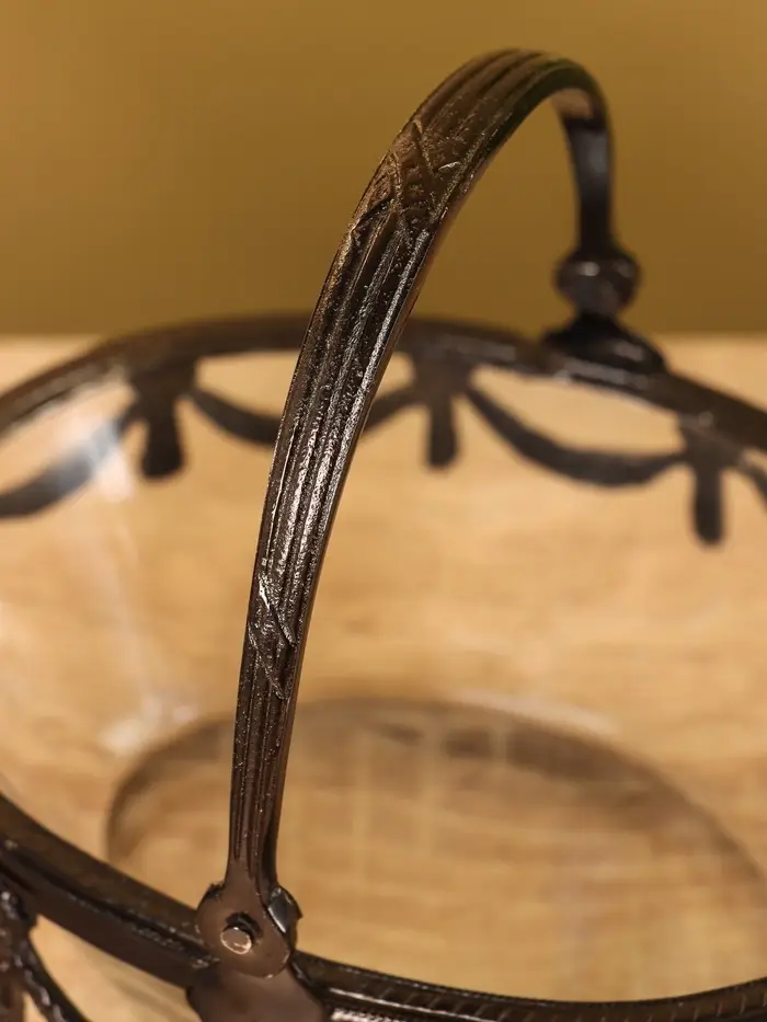 Стеклянная ваза с ручкой «Богемия», 14.5×13.5×11.5 см, стекло, латунь