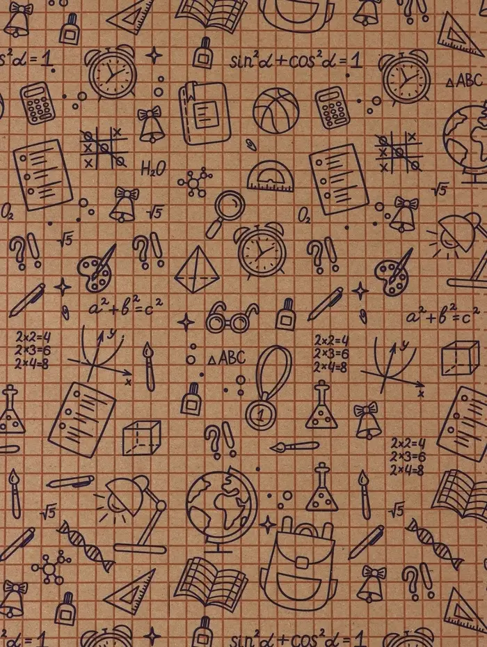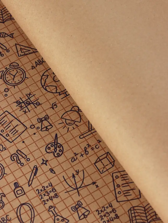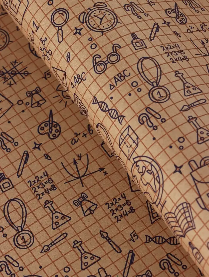 Бумага упаковочная крафт «Школьная пора», коричневый/синий на коричневом фоне 0.7×10±5%м