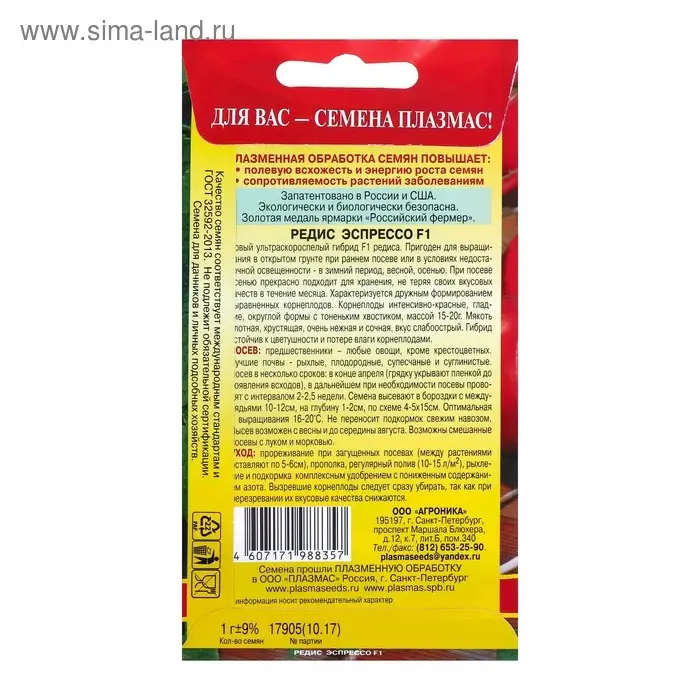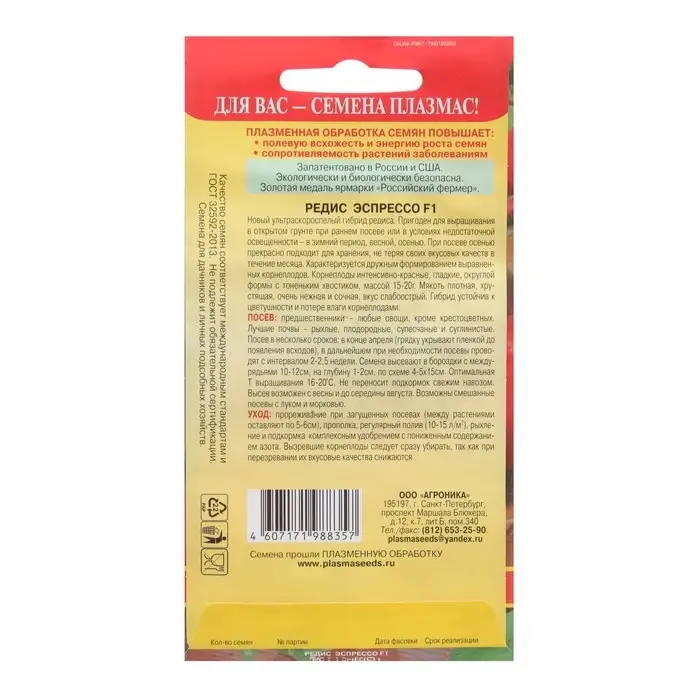 Семена Редис "Эспрессо" F1, ультраскороспелый, 1 г