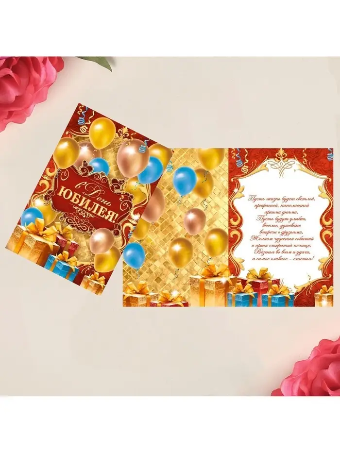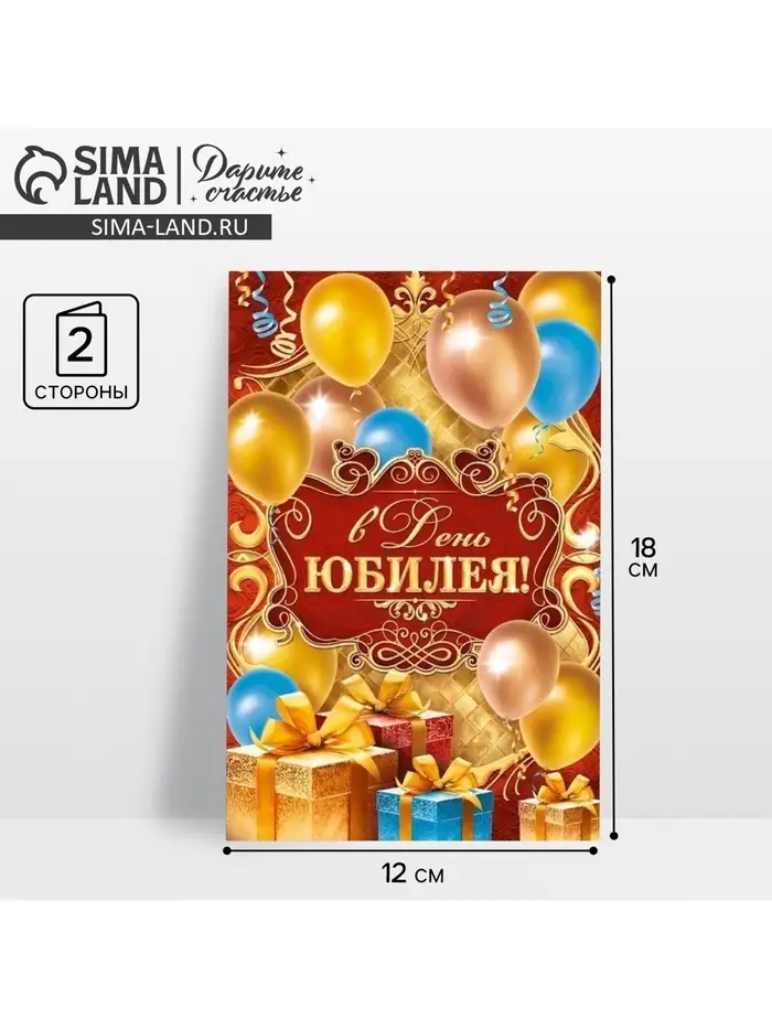 Атмосферу праздника создают детали: свечи, цветы, бокалы, воздушные шары и поздравительные открытки — яркие и весёлые, романтичные и нежные, милые и трогательные. Расскажите о своих чувствах дорогому для вас человеку, поделитесь радостью с близкими и друзьями. Открытка «В день юбилея», 12×18 см с креативным дизайном вам в этом поможет.