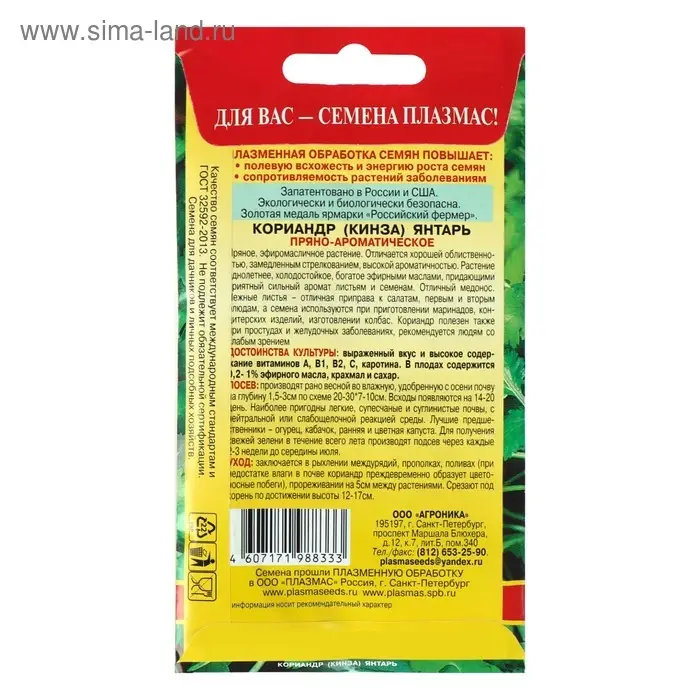 Семена Кориандр "Янтарь" "Лидер", пряность, 3 г ,