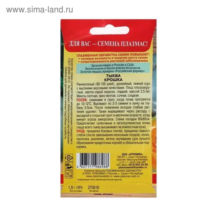 Семена Тыква"Сибирская малышка"3шт* Селекция Агрос